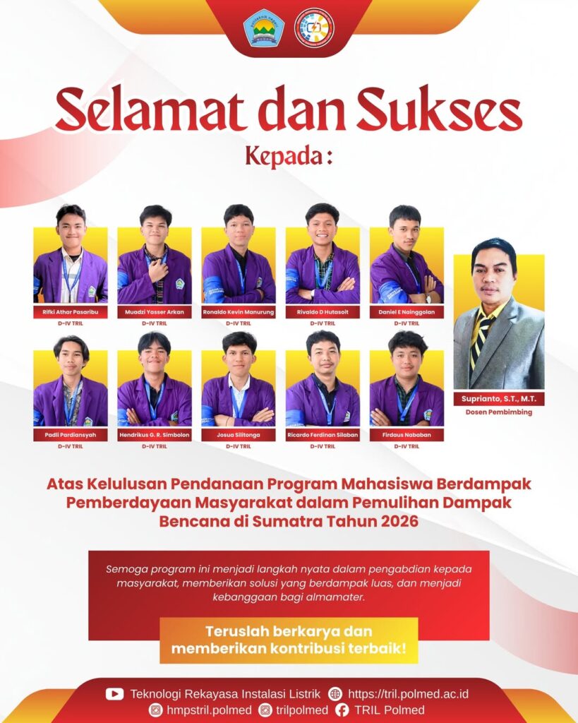 Program ini dilaksanakan di bawah bimbingan langsung Bapak Suprianto, S.T., M.T., selaku Ketua Jurusan Teknik Elektro POLMED sekaligus Dosen Prodi D4 TRIL.