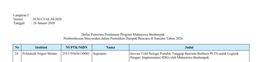 0080/C3/DT.05.00/2026 tanggal 26 Januari 2026 tentang Penerima Pendanaan Program Mahasiswa